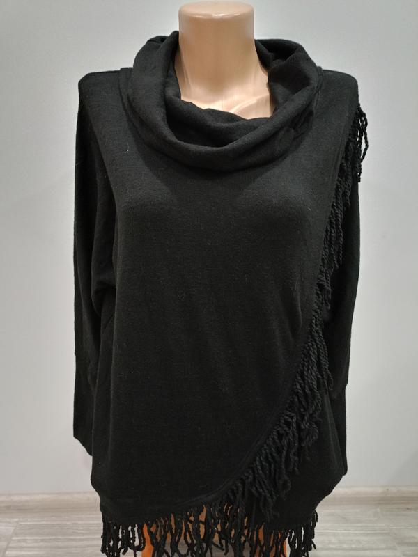 кофта с воротником-хомутиком и бахромой спереди, черный, размеры разные