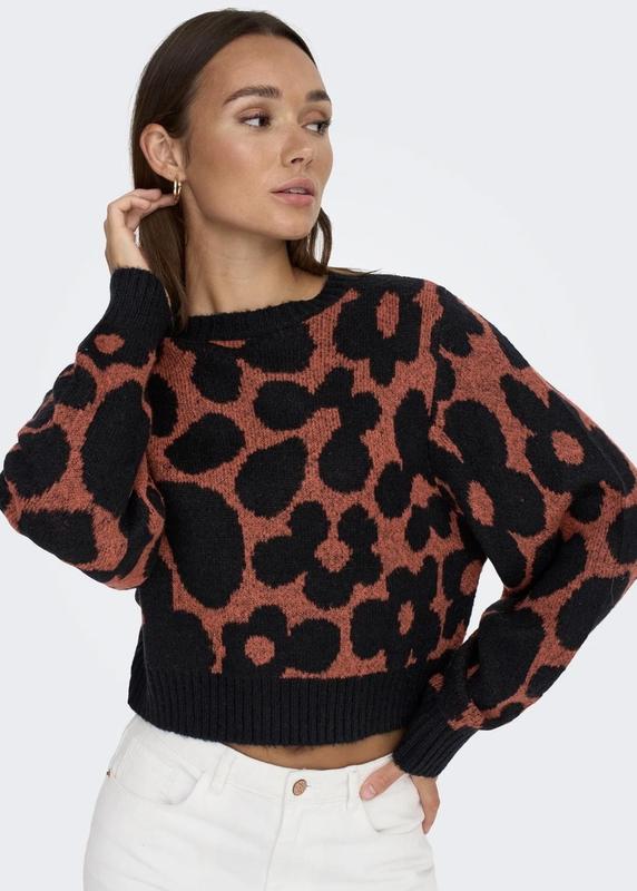 П: Стильный, теплый укороченный джемпер в принцессе в черно-рыжом цвете, объемные рукава, размер С-М 15284285