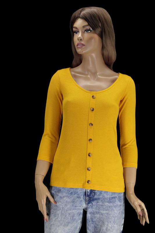 Брендовая кофта, лонгслив в рубчик "Peacocks" ярко-жёлтого цвета. Размер uk12/eur40. Без застёжки (спереди имитация застёжки на пуговицы). Замеры в нерастянутом виде: -ПОГ - 38 см; -ПОТ - 36 см; -длина - 63 см; -длина рукава 3/4 - 47 см. Без каких-либо дефектов. В идеальном состоянии. *Рост манекена, на котором сделано фото - 185см.