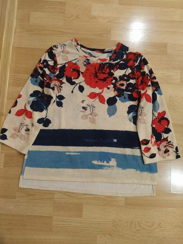 стильная кофта женская, оригинал, nut meg, новая без бумажной бирки, трендовый цветочный принт, рукав тричетверты, по бокам распорки, качественный бренд, размер L, XL другие товары известных брендов просматривайтесь и подписитесь на моей странице
