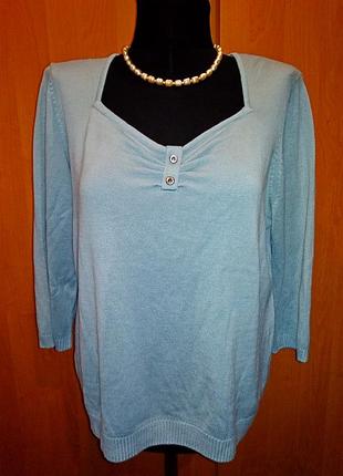 Джемпер XL сіро-блакитний,в дуже хорошому стані,м'який,на грудях 2 великих стразика,ПОГ 56-66,низ 50-60,плечі 43,укорочений рукав 44,довжина 58.Манекен 46р.