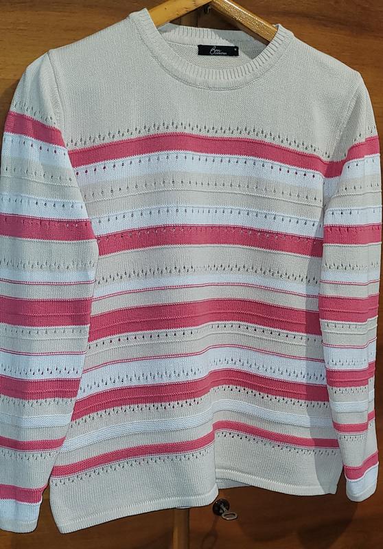 ПОГ 52,Длина 62,Длина рукава от плеча 59 см. Джемпер прямого силуэта с кружевыми полосками.Указан размер М,но большемерит, Ориентуйтесь на мерки. Стан идеален. На все вопросы ответь в переписке.