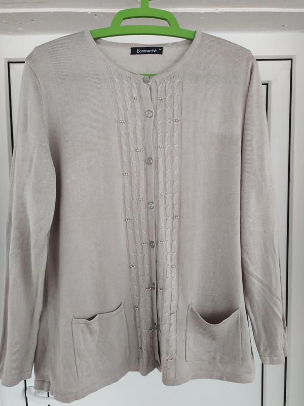 Красивая кофточка,.украшенная бусинками, длинна по спинке 65см,ПО подмышками 60см,плече 11см,длина рукава 60см.