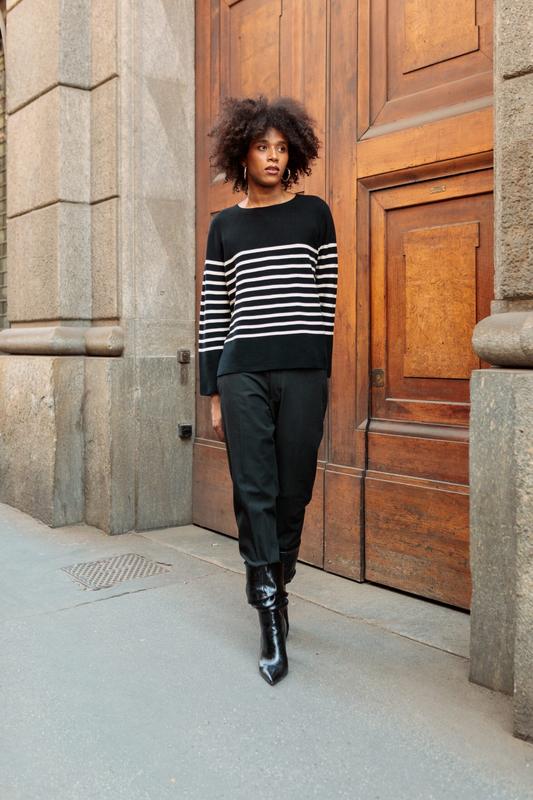 Состав: 100% хлопок удобный трикотаж с контурной линией 100% хлопок для мягкости WHOLEGARMENTⓇ технология без швов прямой крой с посадкой, не сжимающей разделение и манжеты узор в полоску квадратного свободного кроя