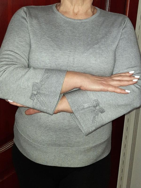 Стильный женственный джемпер. В составе пряжи шерсть с люрексовой нитью. Рукав декорирован бантиком со стразами. Качество на высоте! ✅ Состав: 30% шерсть, 15% кашемир, 37% полиамид, 18% эластан. ✅ Размер указан XXXL, но ориентируйтесь по замерам: ПОГ (от подмышки до подмышки) 49см ширина по плечам 39см длина рукава от плкча 51см длина джемпкра 60см ✅ Состояние идеальное. Дополнительная информация и замеры по запросу. ________________________________ Смотрите также и другие мои объявления 😉 Ассортимент товаров еженедельно пополняется👗👚👠👖👔👟