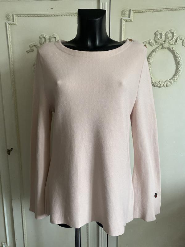 Отличный джемпер нюдового цвета от Busnel. Состав:котон/вискоза (50/50). А-селуэт. Красивый, расширенный длинный рукав, застежка на плече на брендированные пуговицы. Размер по наборке-44. Замеры: длина по спинке-73 см, по переду-70 см, ПОГ-46 см, ПОБ-51 см. Рукав-65 см. Есть пару пятеночек(см. Последние фото).
