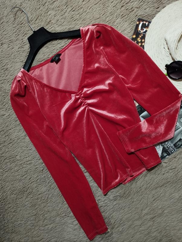 Стан нового. Красивый бархатный джемпер. Ткань средней плотности, тянется. Выглядит супер 😍 Размер 6/34/XS, но смотрите по замерам Замеры (полуобхват): Грудь 36 (тянется до 44) Рукав 62 Длина от плеча 52