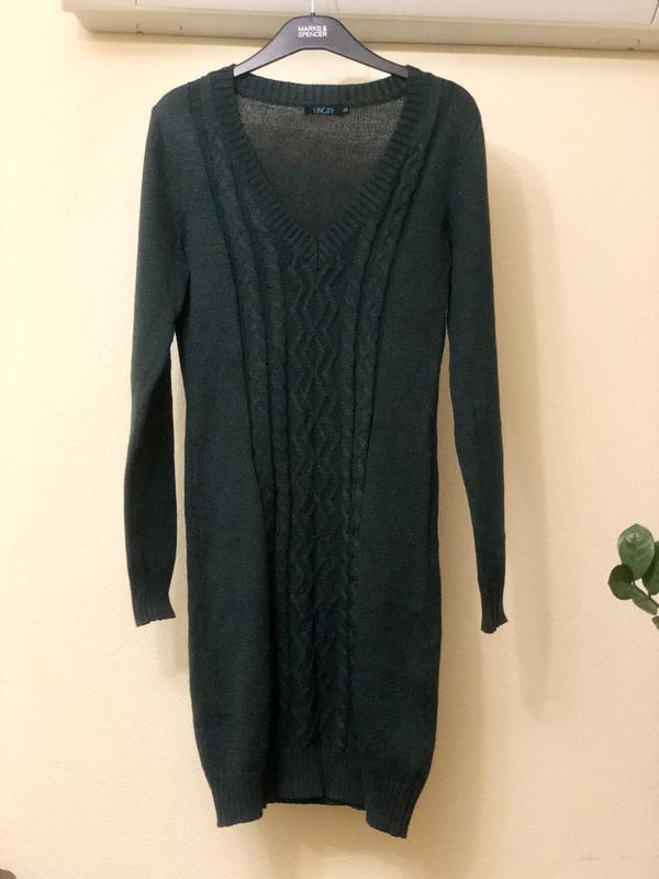 Джемпер бутилочного кольору, довгий. Джемпер-сукня. Розмір вказаний 44. Довжина 91 см. ПОГ 46 см в нерозтягнутому вигляді. Плечі 42 см. Рукав 65 см. Стан дуже гарний. Ніяких нюансів немає. Важливо!!!! В призначенні платежу писати - Компенсація вартості за вживану річ.