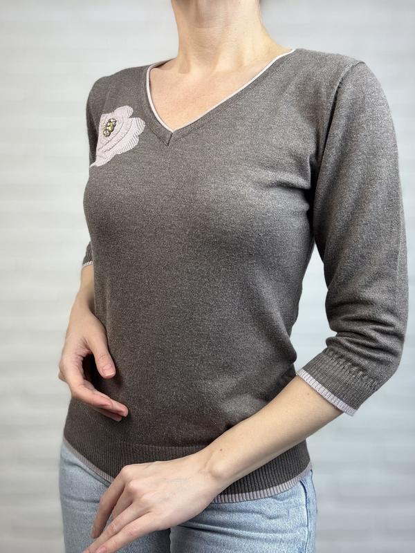 Ошатний тоненький джемпер з рукавом 3/4 від преміум бренду Gertie Стан як новий, повний ідеал ✨ Дуже гарна якість! До тіла мʼякесенький і приємний. Чудово сідає по фігурі. Гарне поєднання кольорів, капучіно+ніжно рожевий Склад: 65% бавовна 20% вовна 15% віскоза Ідеально підійде на осінь/весну, або в тепле приміщення взимку Розмір вказано S/M Фактичні заміри: Плечі 36 Груди 44,5, тягнеться 52 Низ резинка 38,5, тягнеться 52 Довжина 57 Довжина рукава 40,5 Відправлення щодня 📦