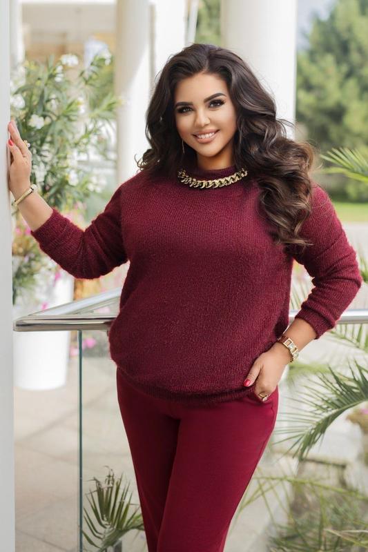 Джемпер №6506/1. Размер: 50-52, 54-56, 58-60. Цвет: зеленый, бежевый, синий, черный, бордо. Ткань про-во Турции; блуза-: ангора "травка" с люрексовой нитью. Универсальный джемпер на каждый день. Свободный крой и длинный рукав дают возможность идеального сочетания блузки и с брюками, и с юбкой. Перед и спинка цельнокроена. Горловина круглая, с втачной планкой. Горловина переда декорирована объемным украшением. Рукав "реглан" длинный с приточной манжетой. Замеры: Размер 50-52. Блуза 70 см., рукав від плеча – 75 см. ОГ-110 см. Размер 54-56. Блуза 71 см., рукав від плеча 76 см. ОГ-118 см. Размер 58-60. Блуза 72 див, рукав від плеча 77см. ОГ-126 см.