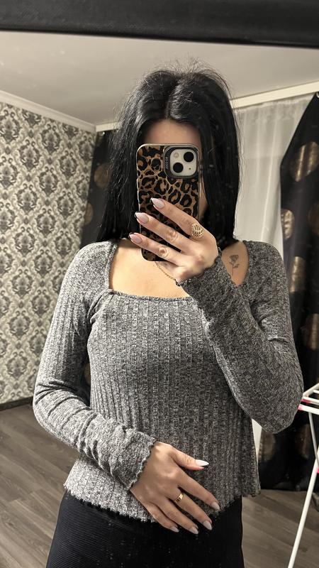 Кофта (реглан) розмір xs-s, одягнуто на xs, стан ідеальний, без дефектів, квадратний виріз , колір сірий( крупний рубчик)
