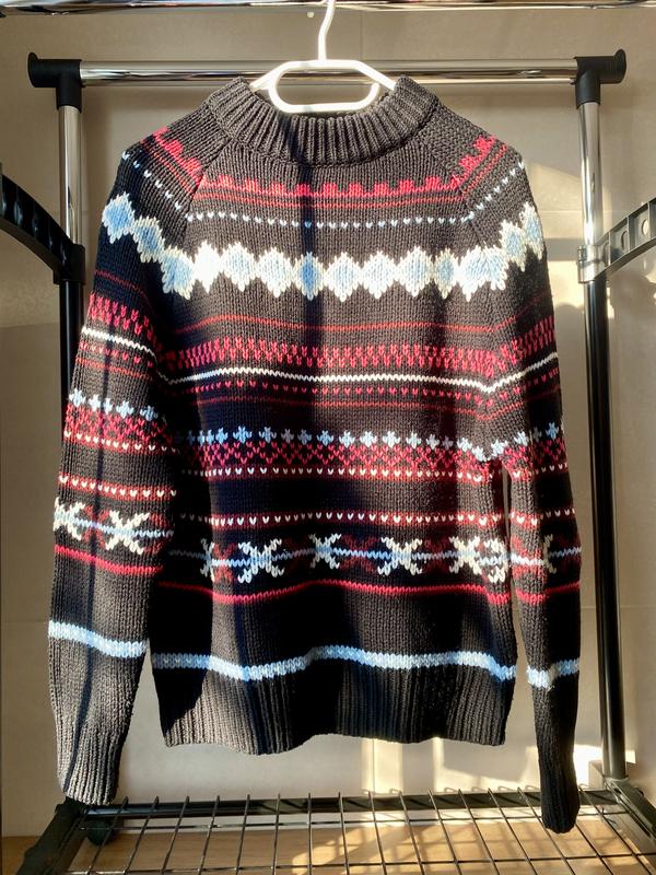 Джемпер насичено чорного кольору , в ідеальному стані, гарному орнаменті . Пог-47, довжина-58, рукав від горловини-73