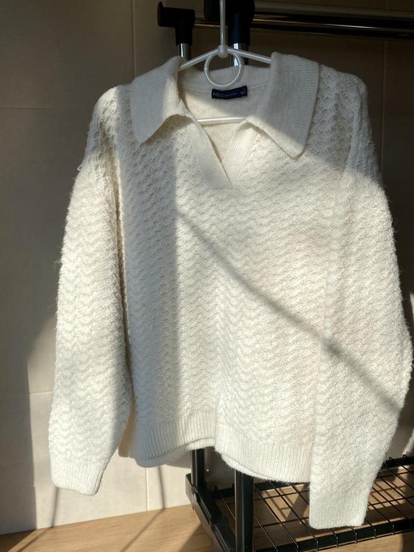 Мягкий, приятный к телу, толстый, двойная вязка, очень теплый. Пог-57,длина-59, рукав-50, цвет молочный