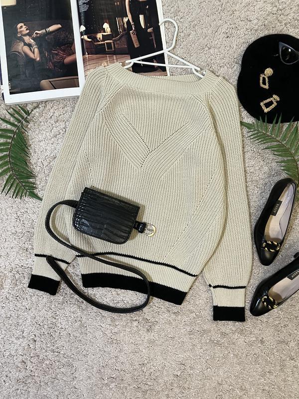 Для більш точного визначення, виміри, порівнюйте із вимірами подібної речі, а не зі своїми обсягами. Базовий светр з візерунком. Щільна машина в'язка з візерунком. Не просвічується, трохи тягнеться. Рукава регланом, об'ємний зі щільними манжетами. З боків розрізи. Стан: ідеальний. Дефекти: немає. Розмір на бирці: бирки зрізані. (Виміри виробу вимірюються у напівобхваті, а не від шва до шва!) Виміри виробу: Рукав від горловини 70 см., Ширина рукава 18 см. Напівобхват грудей 56 см., Напівобхват низ 46 см., довжина по спині 62 см. довжина від плеча 65 см. Склад тканини: бирки зрізані. Країна виробник: бирки зрізані. Бренд: бирки зрізані. Оплата і доставка: Оплата на картку монобанк. Бронювання на оплату тільки 24г. При змінах наміру купувати обов'язково повідомляйте! Доставка: На час введення воєнного стану уточнюйте чи можлива доставка до Вашого пункту. Актуальні новини можна уточнити на сайті перевізника та за номером телефону контакт-центрів. Не забудьте ПІДПИСАТИСЯ щоб бути в курси всіх новинок та розпродажів!