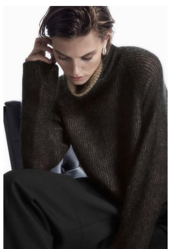 Коллекция трикотажных изделий COS выделяет пряжу премиум-класса и инновационные методы дизайна. Этот джемпер изготовлен из теплой мохеровой смеси, которая имеет текстурированное ощущение на ощупь и искусно связана с использованием трубчатой конструкции, создавая изысканную двухцветную палитру черного и верблюжьего цветов. Он выполнен в нашем самом классическом крое и отличается высоким воротом, рукавами реглан и четкими краями. - 58% RMS мохер, 36% полиамид (нейлон), 6% RWS шерсть — Номер продукта: 1204137001 Состояние нового, размер L , XL, Фасон свободный подмышки по 68, такая ширина по всей длине, длина от горловины по спинке 66., рукав реглан 77, от горловины