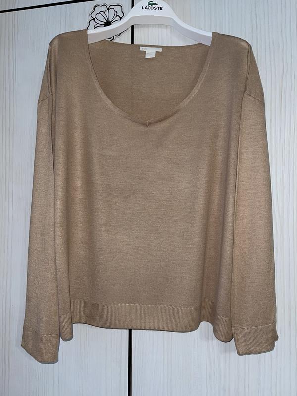 Жіночий джемпер базового тілесного кольору, як новий , натуральний склад, тоненький, вільного крою, більшемірить Розмір вказаний С, але може бути як М, так і Л, дивлячись хто як любить, орієнтується на виміри Довжина 57, пог 59, рукава від шиї 69 Ціна 230 грн