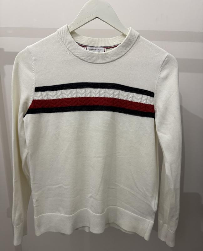 Tommy Hilfiger Джемпер белого цвета с полосками в цветах лого. Размер S 100% котон 600 грн