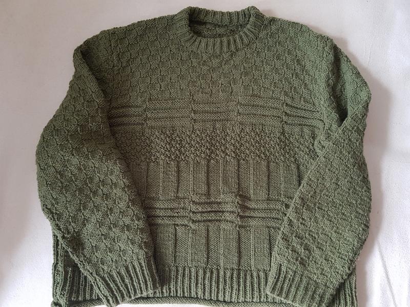Теплый вязаный джемпер из красивой нити, шерсть с акрилом, состояние очень хорошее, объем груди 110см, длина рукава 56,5см, длина 57см, джемпер приятен на ощупь.