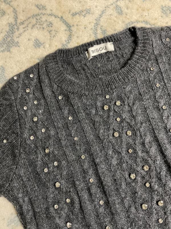 Нова графітова кофтинка з камінчиками «під Zara” Розмір S/M Довжина 41, ПОГ 43, рукав 16, плечі 33