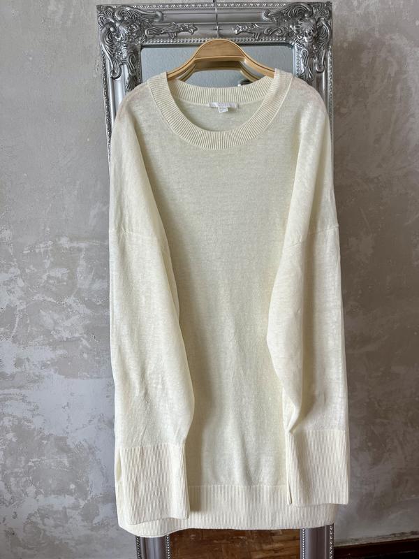 Неймовірний ✨молочного кольору джемпер з льону з додаванням поліаміду(4%),стан нової речі без слідів носіння 🌺заміри:пог-63см,,низ-52,3см,плечі-64см(спущені), довжина рукава-54,2см, довжина по спинці-77,2см
