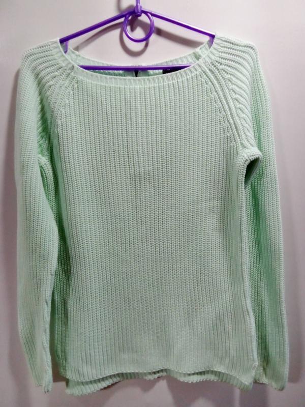 Джемпер, нежный бирюзовый цвет. Сзади молния. Качество супер! 50%-котонДобрый вечер. ПОГ-42 ПОТ-40 ПОБ-42 Рукав от ворота-65 Длина спереди -62