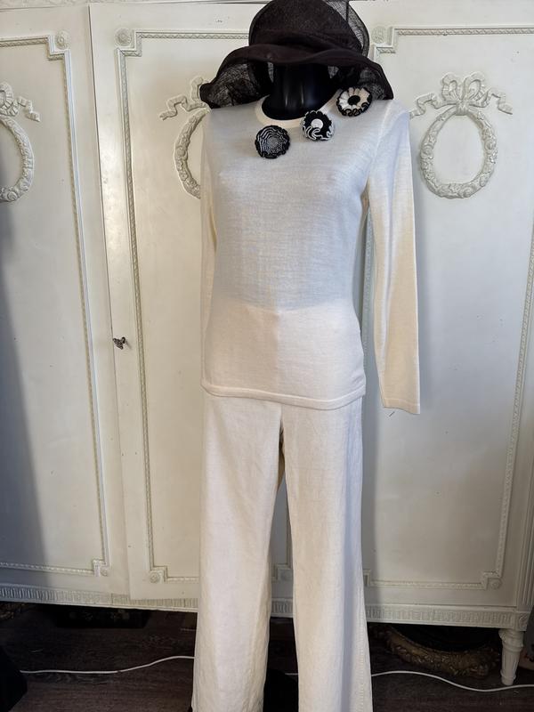 Джемпер с объемными цветами от Lucia. Цвет айвори (слоновой кости). Состав: шерсть/акрил. Размер по набору-36. Замеры: длина-61 см, ПОГ-43 см, ПОБ-43 см, рукав-59 см.Есть незначительный нюанс-см. Последнее фото.