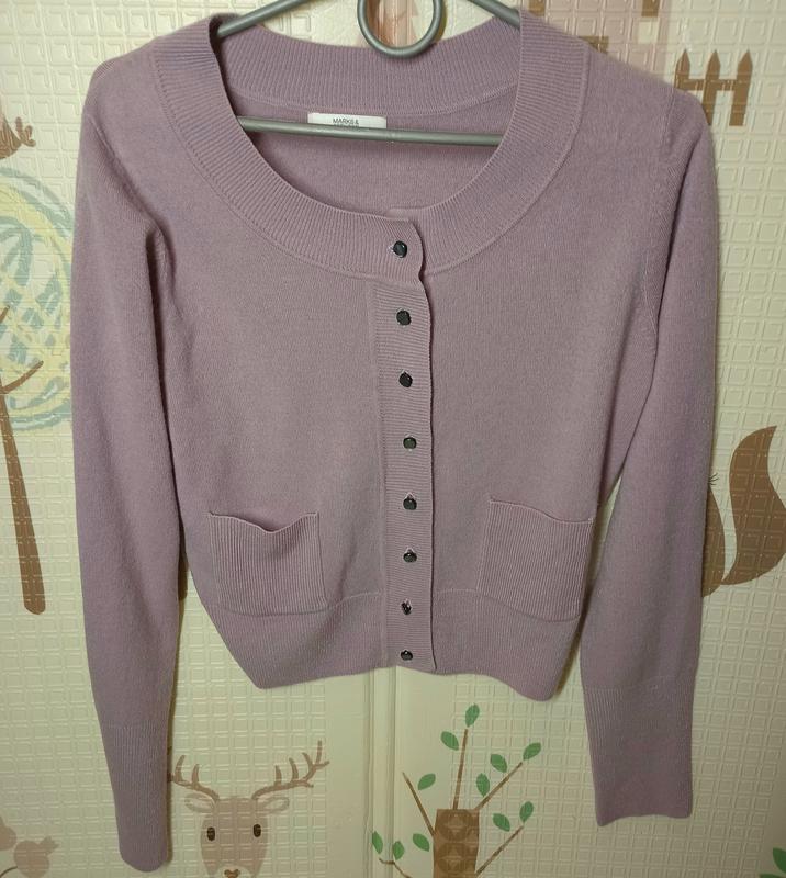 симпатичная кофточка, мягенькая и приятная на ощупь, нежно-сиреневого цвета, в идеальном состоянии. длина 48, ширина 44, рукав 62