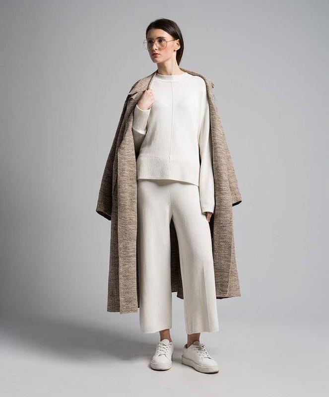 Классный светлый джемпер из мягкого волокна, стильный свободный фасон оверсайз, линия плеча вынуждена, по горловине и низу манжеты, отлично садится, идеально комбинируется.