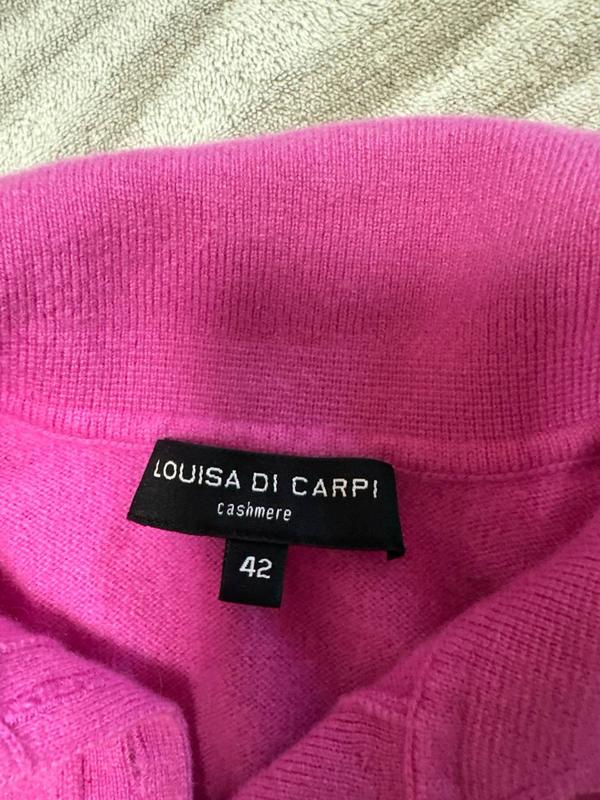 Яркий кашемировый джемпер с воротником поло, размер ХЛ, дорогой бренд - louisa di carpi, супер качество, цвет мягкая фуксия.