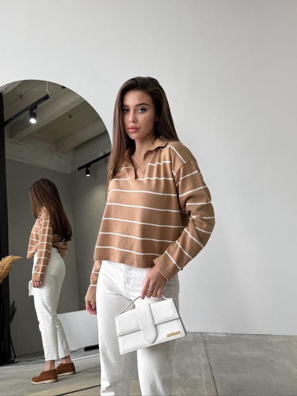Легкое и приятное к телу поло в полоску 😍✨ Стильное поло свободного кроя обеспечит комфорт и станет идеальным дополнением к любому гардеробу. Легкая текстура и мягкость ткани делают его незаменимым выбором для повседневных образов! 💫 ✔ Арт. Levi ✔ Состав: 70% акрил, 30% шерсть ✔ Размер: 42-46 ✔ Кольори: 🔹 Черный-белый ⚫⚪ 🔹 Молочный-черный ⚪⚫ 🔹 Кэмел-молочный 🤎🤍 🔹 Молочный-кемел 🤍🤎 🔹 Серый-белый ⚪⚫ ✔ Цена: 1100 грн 💰 Комфорт и стиль в каждой детали! 💕