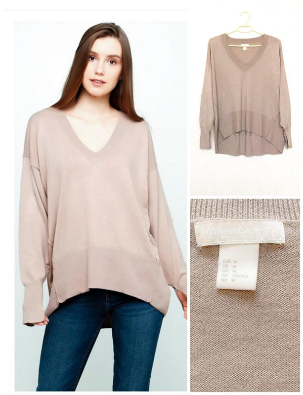 Тонкий джемпер оверсайз коллаборация CONSCIOUS и H&M. Размер М, можно на L/XL. В подарок к любой покупке! ПОГ 64 см, длина впереди 60 см, сзади 70 см, рукав от горловины 76 см. Состав: 60% переработанный полиэстер, 35% полиамид, 5% шерсть.
