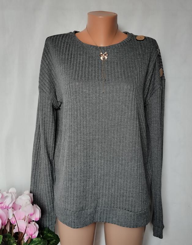 Классный джемпер лонгслив, ткань в широкий рубчик. На одному плечі гудзики для декору. Замеры: длина 65 рукав от горловины 81 пог 56-74 сесс 55-69 низ 55-65