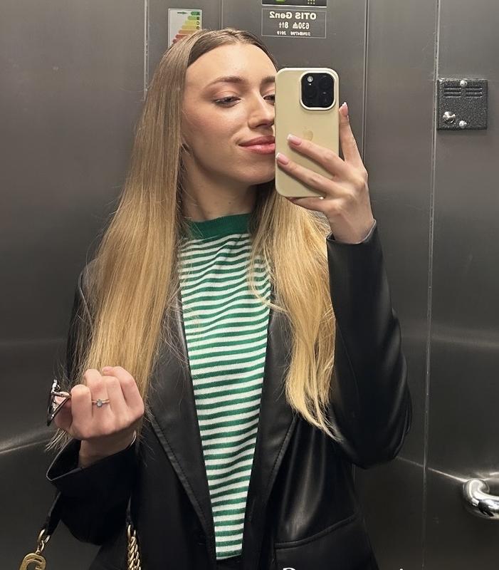 Стильная легкая кофточка в зеленую и белую полоску. Трендовый цвет. Очень приятная к телу. Размер M. Подходит на С (будется оверсайз)