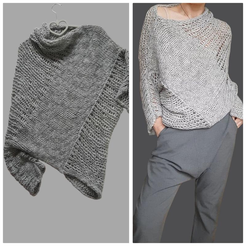 Джемпер оригінального крою , якісна пряжа, м'який,Vanilia, 25% альпака 25% wool 50% п/акрил, стан відмін., груди 65 довжина 70, можна вдягати у двох варіантах