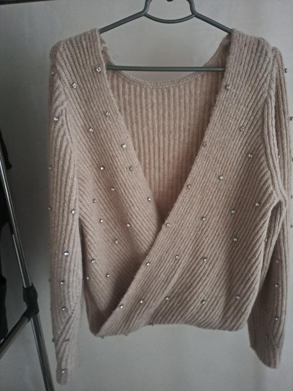 очень красивый джемпер, с камушками, красивая открытая спинка, в составе шерсть 37%та альпака 7%, очень приятный, не колый, свободно по фигуре