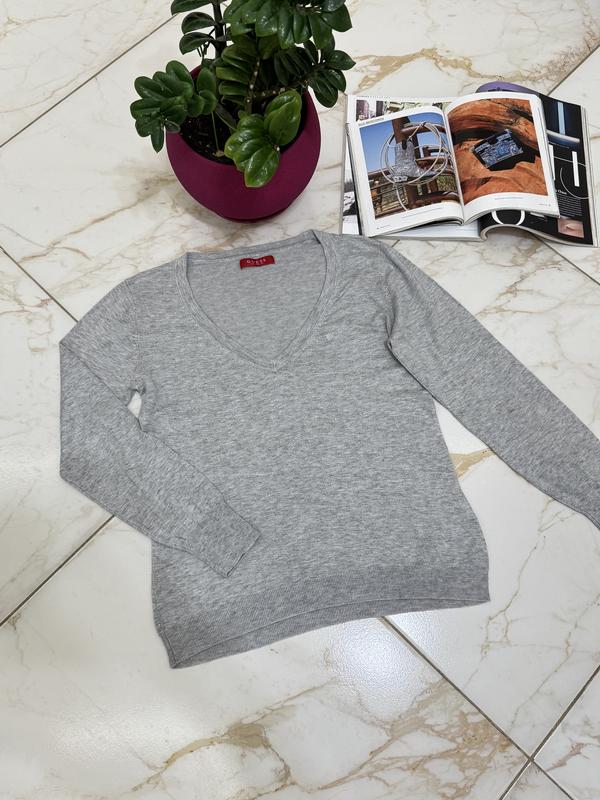 Женский джемпер с v-вырезом в размере М. Стан - идеальный. Состав: 80% вискоза, 20% нейлон. Длина - 54 Бюст – 44 По линии низа - 38 Длина рукава от плеча - 59