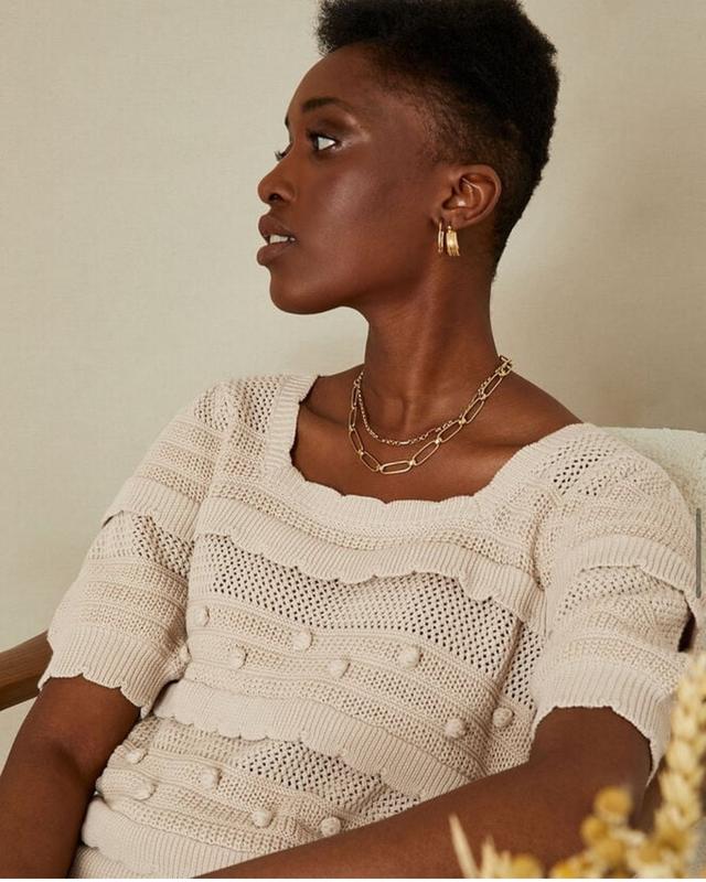 Джемпер с квадратной шеей и кружевной строчкой MONSOON Размер 38 Состав 💯 котон
