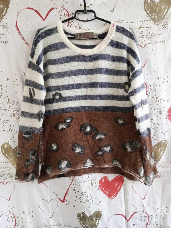 Теплый фирменный джемпер Состояние отлично, без каких-либо дефектов! Размер S/М ПОГ - 52 см+ длина - 56 см спереди и 60 сзади Состав - 40% полиамид, 30% мохер, 30% шерсть