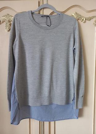 Стильный джемпер оверсайз, размер М, Пог 58см, плечи 37см, рукав 58см, длина сзади 72см, спереди 61см, перод 100% тонкая шерсть, сзади 100% коттон, новый, без бумажной брожки.