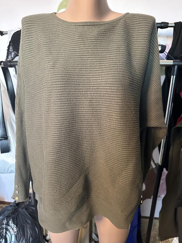 Стан 10/10 бірка xl( 46-48) підійде на 56-58 Пог 64 Пот 63 Поб 61 Довжина 54 Довжина рукава від горловини 65 Заміри в спокійному стані, тягнеться Склад: 50% віскоза 29% поліестер 21% нейлон