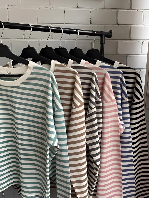 Склад тканини: 100% бавовна – мягкая и приятная к телу. 🕸Размеры: универсальный (S-L) Замеры: Полуобхват груди - 51 см Длина - 55 см Рукав от воротника - 70 см, от спущенного плеча - 51 см. 🎨 В наличии 6 цветов полоски: черная, синяя, розовая, серая, коричневая, зеленая