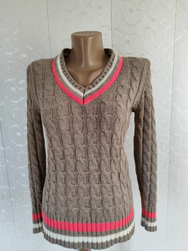 Актуальный джемпер красивого цвета какао с молоком, можно носить под блузу. Актуальная вязка. Размер S/M. Производство Турция. Материал шерсть 80%, акрил 20% Замеры: длина 62/58 плечи 37 бюст 43 талия 40 рукав 60 см