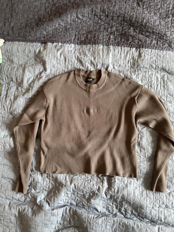 Серая кофточка в рубчик с надписью. Стан идеален.