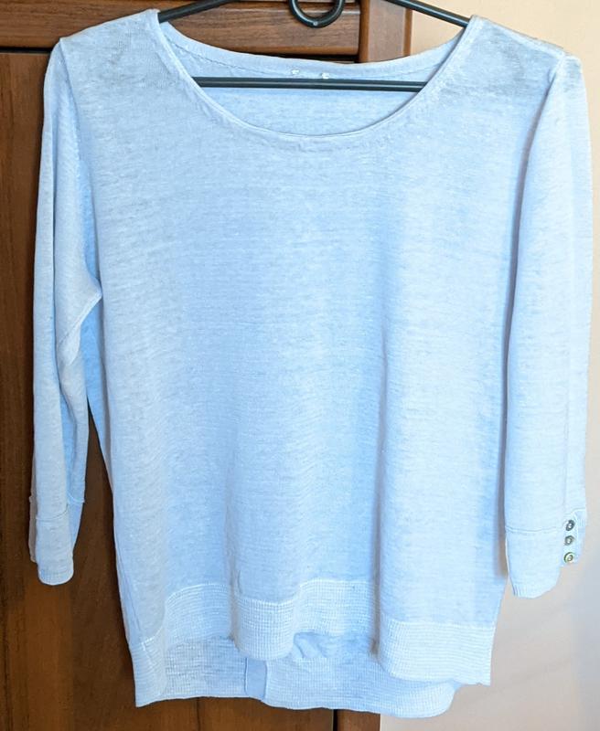 джемпер из 💯 льна в 38 размере, состояние идеал, бирка производителя отсутствует. ПОГ 51, длина 56-61, рукав 45, плечи 38. полная предоплата