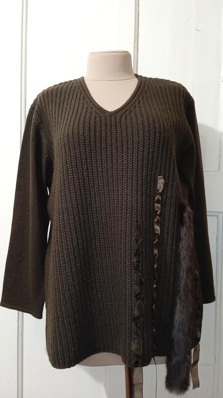 Полушерстяной, приятный к телу джемпер/кофта с длинными рукавами, оригинального дизайна. Ног 62, рукав от горловины 65, длина по спинке 65