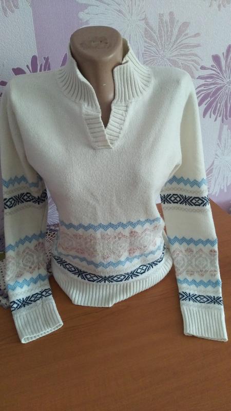 джемпер с орнаментом спереди. пог 44 длина 55 акрил цвет молочний