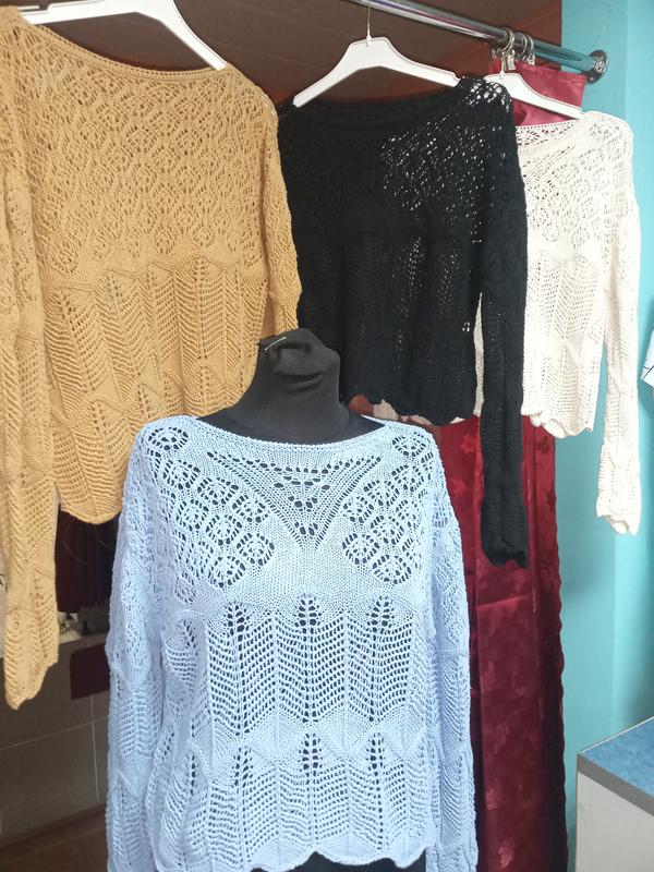 Однотонный укороченный джемпер с модным вязаным узором по всему изделию. Свободный удобный фасон. Джемпер с длинными свободными рукавами, с закрытым круглым вырезом горловины. Приятный к телу материал и качественный пошив. Стильный и удобный джемпер для повседневной носки. Отлично комбинируется с другой одеждой. ог 100 см длина 53 см турция