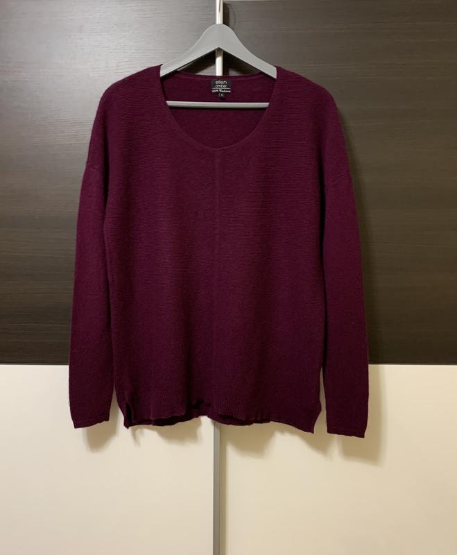 Чудовий джемпер гарного, якісного німецького бренду в ідеальному стані. Якісний Кашемір. Джемпер легкий, мягенький і пухнастий. Красивий колір Бордо, спущений рукав, круглий виріз, тягнеться. Крій вільний. Можна носити і влітку у прохолодні вечори. Стильна річ! Розмір вказано -S, але орієнтуйтеся на заміри. Плечі-65, рукав-51, під пахвами -55, пот-52, довжина-68. Питайте….