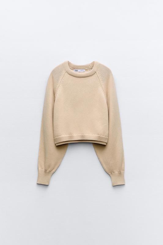 Бежевий джемпер Zara Джемпер з круглим вирізом і довгими рукавами. Декоративна строчка з боків. Розмір М, підійде і на S, L за рахунок вільного фасону Стан ідеальний Заміри: рукав від горловини (рукав-реглан)-74 см, півобхват грудей-59 см, довжина-48 см.