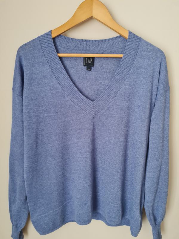 Цвет - голубой или светлый джинс, немножко меланж. Размер производителя указан S, но больше подходит на размер М-L. Замеры (полуобхват): Длина 62 см Ширина груди 54 см Длина рукава 59,5 см Вырез длина 23 см • свободный крой • V-образный вырез • длинные рукава Состав: 55% лен, 45% полиэстер. Стан идеален, 9 из 10. Тоненький, приятный на ощупь. Купила себе, но не носила.